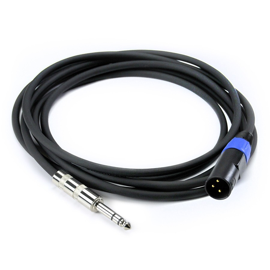 The six-foot STM06 from Whirlwind is a balanced 3-pin male XLR to 1/4" male TRS adapter cable, suitable for microphone- or line-level use. The cable is wired with pin 2 hot.
