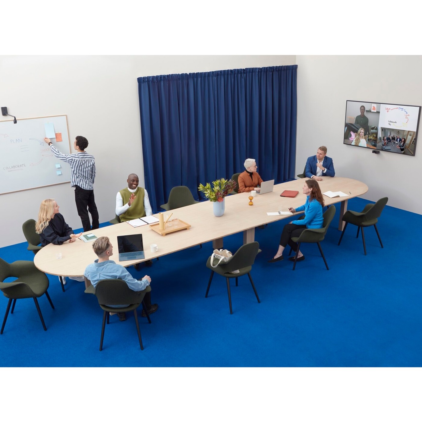 Huddly L1 captures everyone in sharp quality, thanks to a large image sensor and a custom lens. This makes it easier for remote participants to see everyone's face clearly and to pick up on non-verbal cues, even from those at the far end of the table.